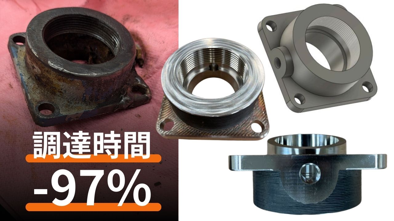 金属3Dプリント:強度が求められる部品のためワイヤーDED方式のMeltio M600を採用。本部品は約10時間で造形。
